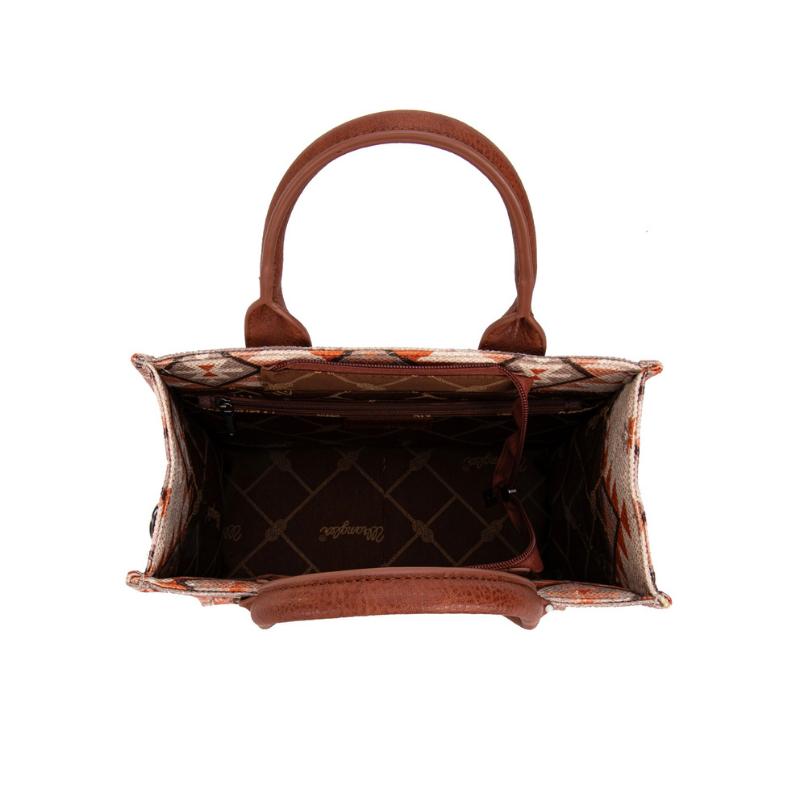 The Wrangler Macy Aztec Crossbody Bag combines timeless Western aesthetics with everyday practicality. Crafted in warm tan leather, this versatile bag features striking Aztec-inspired detailing that adds character to any ensemble. The adjustable crossbody strap ensures comfortable, hands-free carrying, while the structured silhouette maintains its shape throughout the day. Perfect for those who appreciate authentic Western style without compromising on functionality, this piece transitions effortlessly from casual outings to more refined occasions.