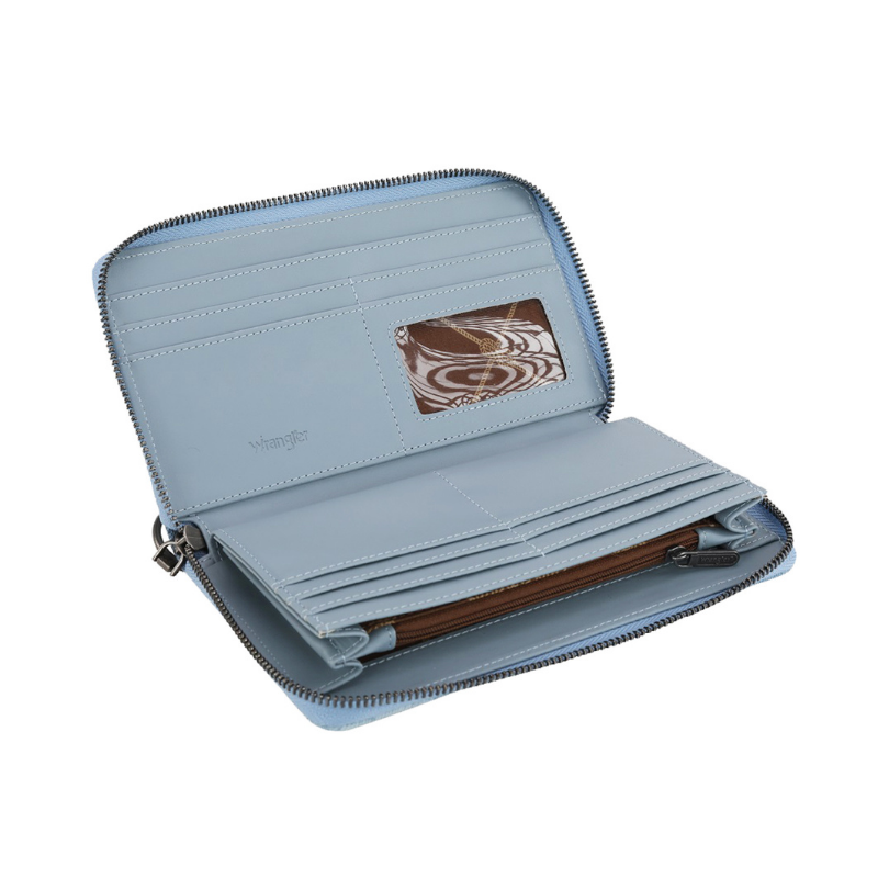 The Wrangler Willa Wallet combines timeless Western heritage with contemporary style. Crafted in soft light denim, this versatile accessory features classic Wrangler detailing that complements both casual and refined looks. Perfect for those who appreciate quality craftsmanship and understated elegance, the Willa offers practical organisation with distinctive character. An essential piece for the discerning rider or denim enthusiast.