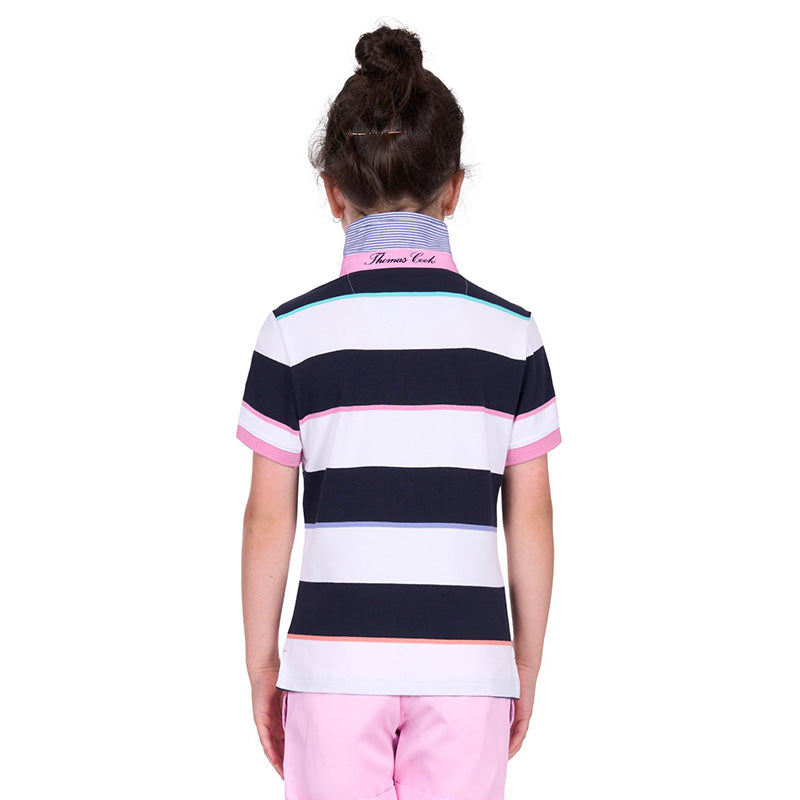 Elevate your wardrobe with the TC Girls Gloria S/S Polo Shirt, featuring a refined multi-colour stripe design that blends style with subtle flair. Crafted from stretch fabric, it ensures exceptional comfort and freedom of movement. Thoughtful details include a durable drill collar, ribbed cuffs, and contrast trims, complemented by contrast taping along the inside neck and side seam splits. The elegant horseman embroidery on the chest adds a distinguished touch, making this polo a versatile and sophisticated choice for any occasion.