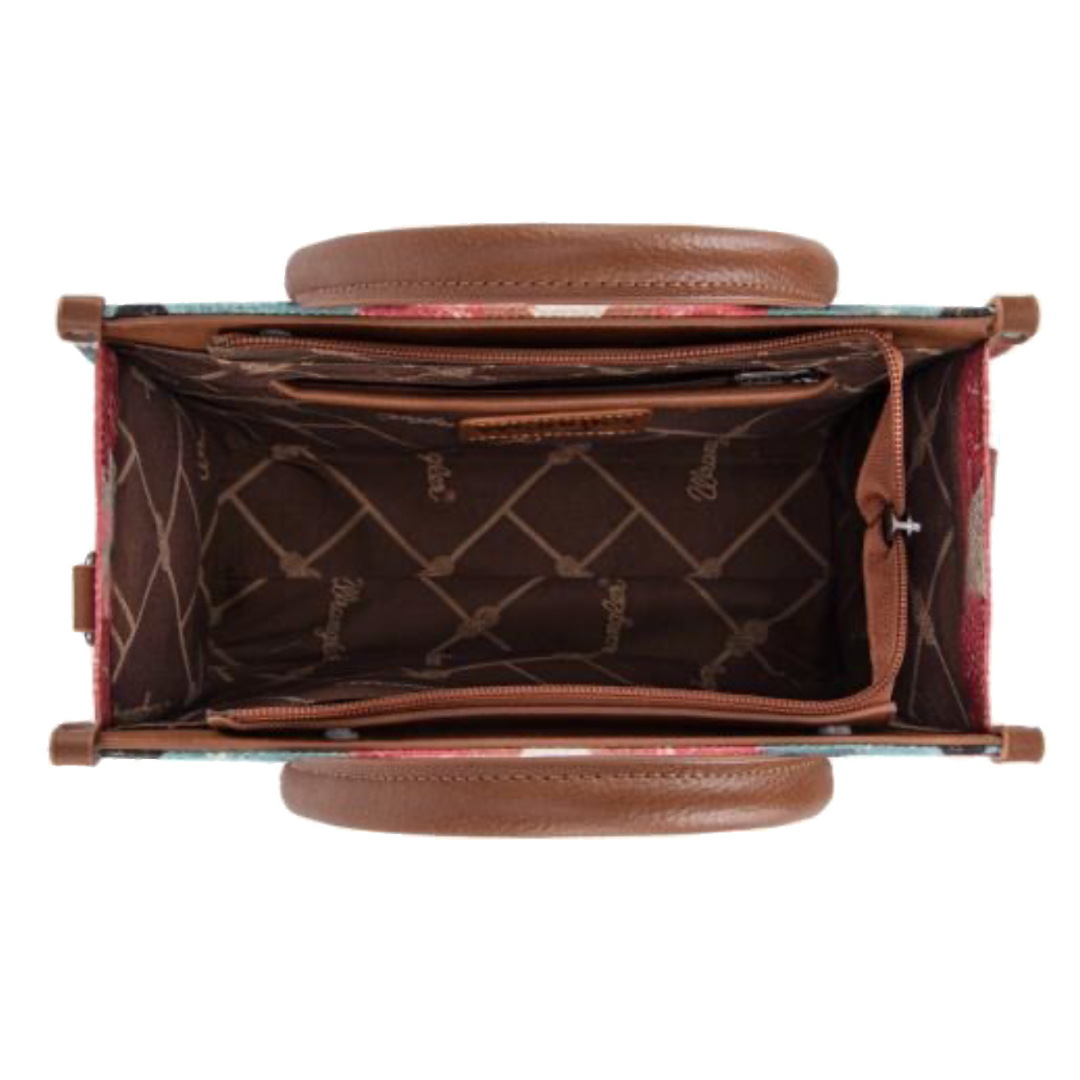 The Wrangler Zena Aztec Crossbody Bag combines stylish Aztec canvas print with refined whipstitch detailing for a sophisticated look. Featuring a secure top zip closure, contrasting handles, and a detachable adjustable strap, it offers versatile carrying options. Inside, an internal zip pocket and slip pockets keep essentials organized. Crafted from durable canvas and PU, this compact bag measures 27cm by 21cm by 11cm, blending practicality with iconic Wrangler flair.