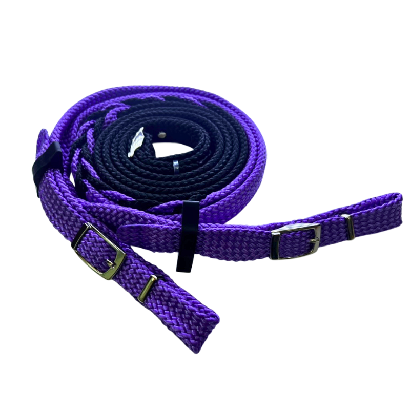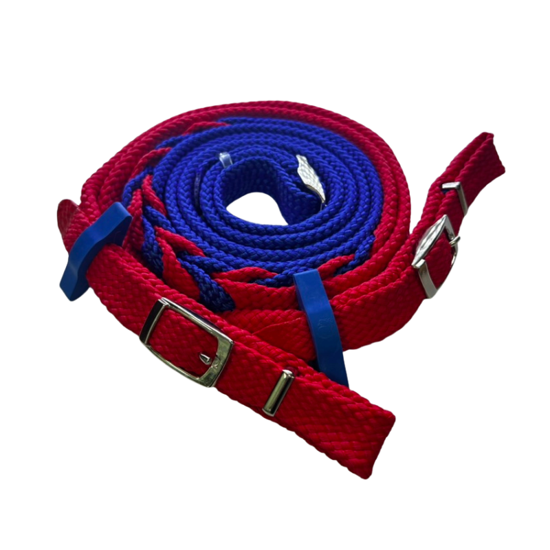 Crafted for the discerning rider, these joined buckle reins combine refined aesthetics with practical functionality. The two-tone design offers visual elegance while the integrated rein stop prevents the reins from slipping through the buckle during use. Constructed with quality materials and traditional joinery, they deliver reliable performance and a polished appearance in the saddle. An essential accessory for riders who value both style and substance.