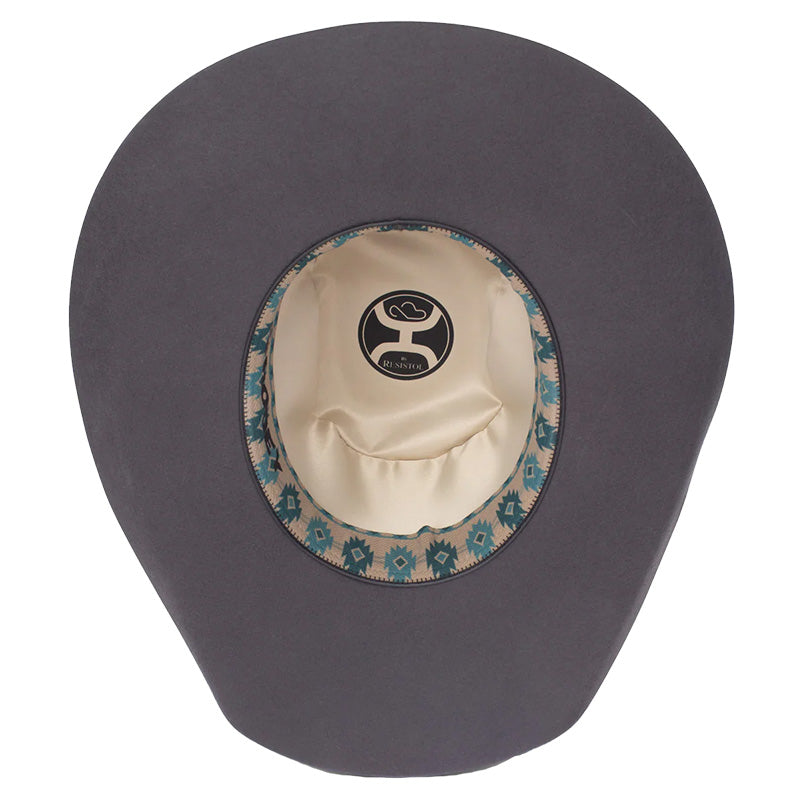 Elevate your western wardrobe with this distinguished Resistol Silver Smoke Hooey hat, crafted from premium 4X wool felt in a refined grey tone. Featuring a commanding 5 1/4" rounded brick crown and 4 1/4" brim, this hat delivers authentic cowboy style with understated elegance. The cloth sweatband ensures comfort during extended wear, while the multicolor Southwestern-inspired hatband accented with a signature Hooey pendant adds a touch of character. Part of the exclusive Resistol by Hooey Collection, this piece seamlessly blends traditional craftsmanship with contemporary design sensibility.