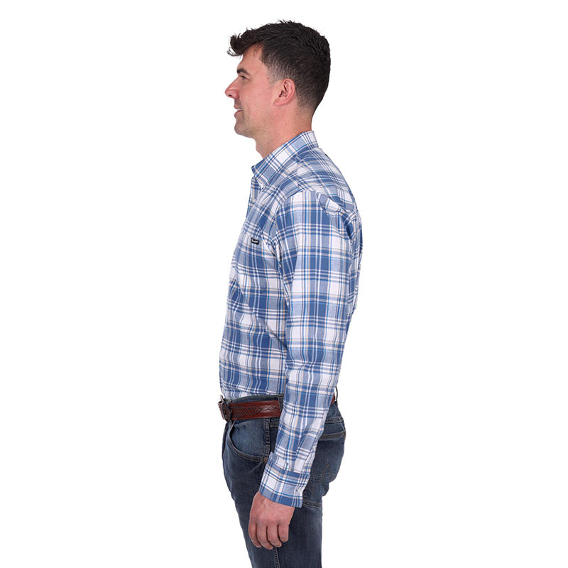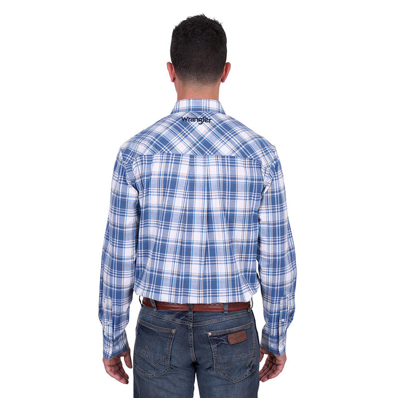The Wrangler Mens Ranger Long Sleeve Shirt offers refined comfort with its stretch fabric, allowing ease of movement throughout your day. Featuring a classic button-down closure, a button-down collar, and a single chest pocket, this shirt combines traditional style with practical design. The back yoke with a box pleat enhances mobility, while subtle contrast trim on the inside collar stand and sleeve cuffs adds a sophisticated touch. Ideal for those who appreciate timeless style paired with functional elegance.