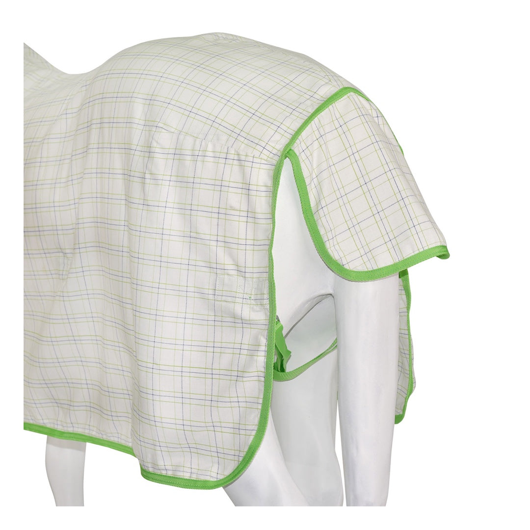 The Showcraft Summer Ripstop Rug delivers premium protection with meticulous engineering. Constructed from 280gsm ripstop polycotton reinforced with strategic ripstop grids, this rug maximises durability without compromising breathability. Fully bound edges and taffeta-lined chest provide refined finishing, whilst the secure double chest strap system ensures reliable fit. Thoughtfully designed features including shoulder gussets, rump darts, and a fleece wither protector enhance comfort and security. Removable leg straps offer versatility, and integrated D rings facilitate hood attachment. An exceptional choice for discerning equestrians seeking quality and functionality.